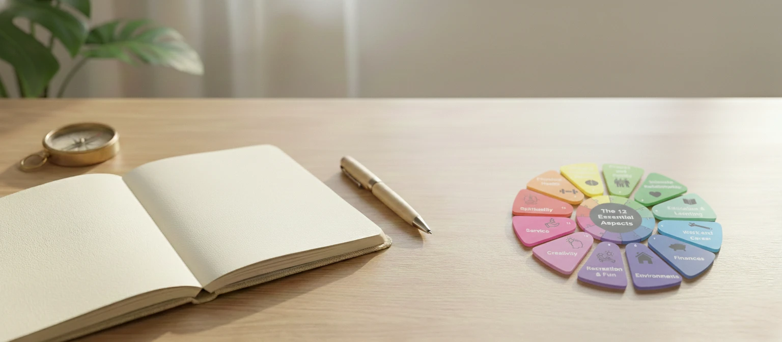 A guided self-reflection tool designed to help you gain clarity about the key areas of your life. By rating your satisfaction, time investment, and priorities across twelve dimensions — from health and relationships to purpose and creativity — you'll begin to see where your life feels balanced and where it may need more attention.